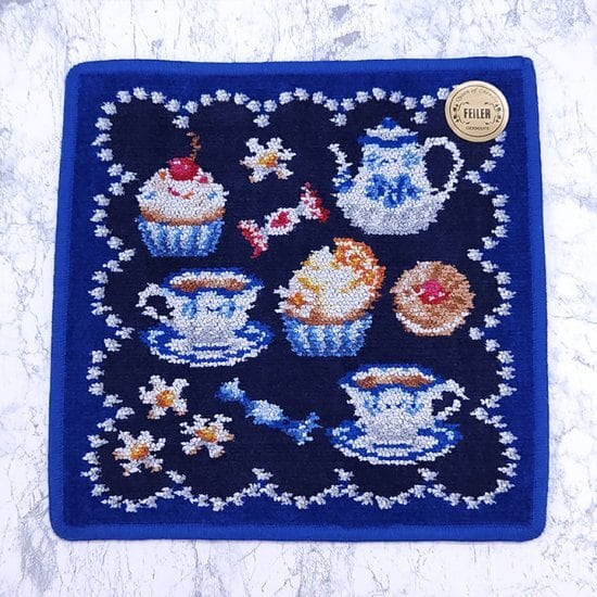 フェイラーFEILER タオルハンカチ SWEET TREAT スウィートトリート ネイビー/青 25cm 小売店限定デザイン ※メール便対応 SWT25988 4.52693E+12
