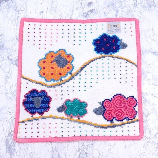 フェイラーFEILER タオルハンカチ シープ 羊 ホワイト/ピンク 25cm 小売店限定デザイン ※メール便対応 FHK25004